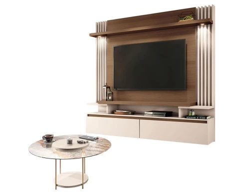 Home Suspenso Cosmo Castanho Off White e Mesa de Centro Sky com Tampo de Vidro Off White- HB Móveis
