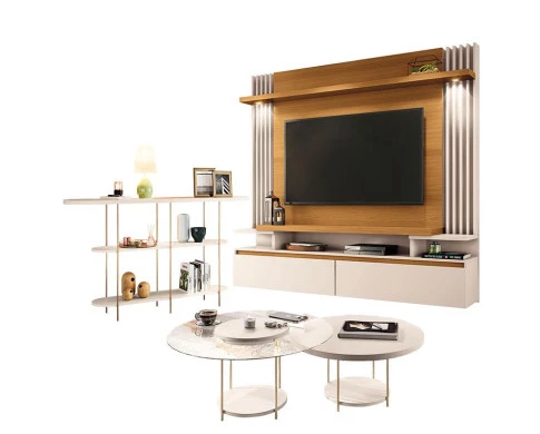 Home Suspenso Cosmo Cinamomo Off White e Aparador Infinity e Kit Mesa de Centro Sky Off White- HB Móveis