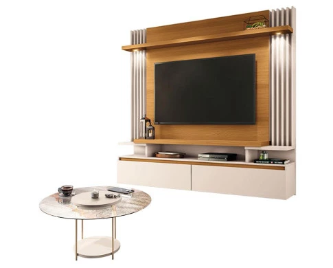 Home Suspenso Cosmo Cinamomo Off White e Mesa de Centro Sky com Tampo de Vidro Off White- HB Móveis