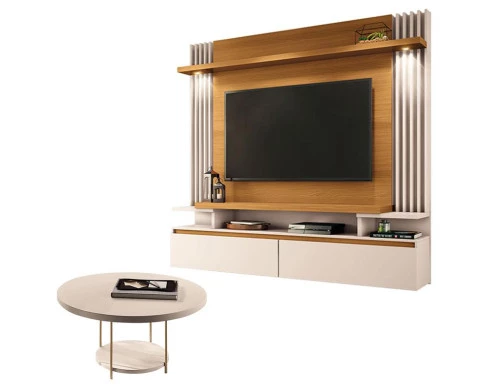 Home Suspenso Cosmo Cinamomo Off White e Mesa de Centro Sky Off White- HB Móveis