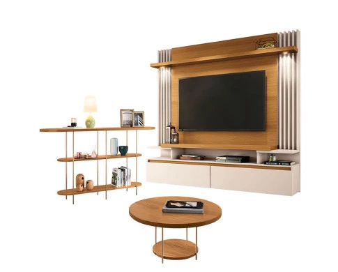 Home Suspenso Cosmo Cinamomo Off White e Aparador Infinity e Mesa de Centro Sky Cinamomo- HB Móveis