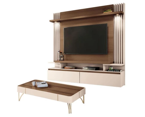 Home Suspenso Cosmo e Mesa de Centro Cadenza Castanho Off White - HB Móveis