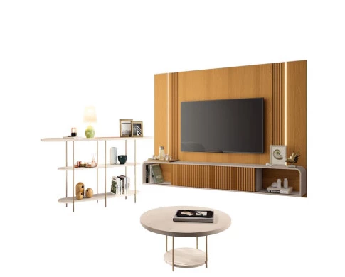 Home Suspenso Empire Cinamomo Off White e Aparador Infinity e Mesa de Centro Sky Off White- HB Móveis