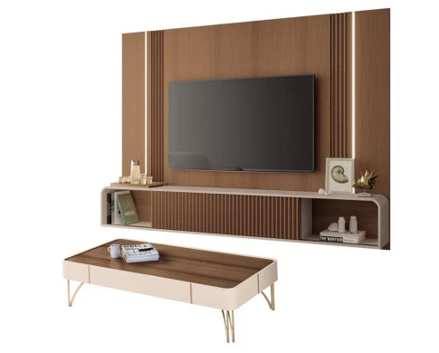 Home Suspenso Empire e Mesa de Centro Cadenza Castanho Off White - HB Móveis