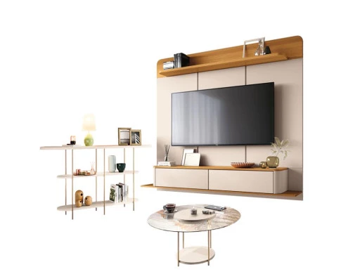 - Prateleiras com amplo espaço para objetos decorativos