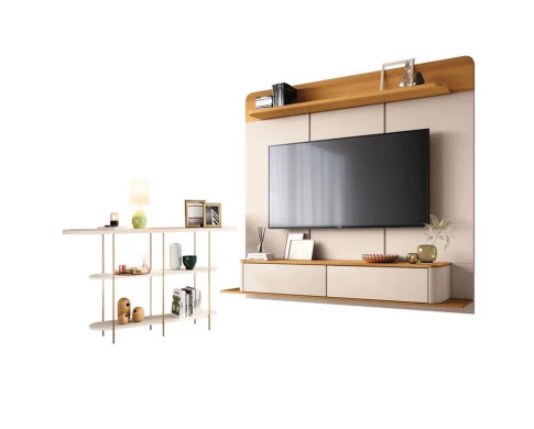 - Prateleiras com amplo espaço para objetos decorativos