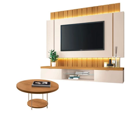 Home Suspenso Illusion 1.8 Cinamomo Off White e Mesa de Centro Sky Cinamomo- HB Móveis