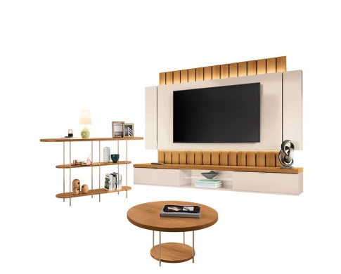 Home Suspenso Illusion 2.2 Cinamomo Off White e Aparador infinity e Mesa de Centro Sky Cinamomo- HB Móveis