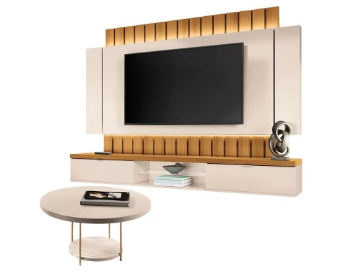 Home Suspenso Illusion 2.2 Cinamomo Off White e Mesa de Centro Sky Off White - HB Móveis