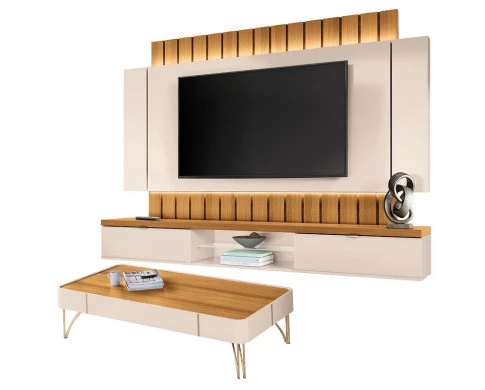 Home Suspenso Illusion 2.2 e Mesa de Centro Cadenza Cinamomo Off White - HB Móveis