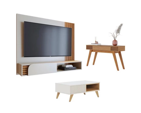 Home Suspenso Jurerê 1.6 com Mesa de Centro Jeri Off White Matte Freijó e Aparador Riviera Freijó - Colibri