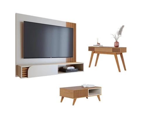 Home Suspenso Jurerê 1.6 Off White Matte Freijó com Mesa de Centro Jeri Freijó Off White e Aparador Riviera Freijó - Colibri