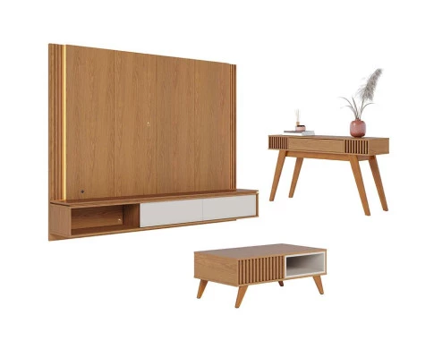 Home Suspenso Loa com Mesa de Centro Jeri Freijó Off White e Aparador Riviera Freijó – Colibri