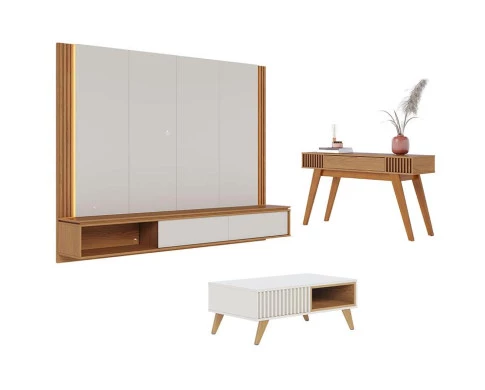 Home Suspenso Loa com Mesa de Centro Jeri Off White Freijó e Aparador Riviera Freijó – Colibri