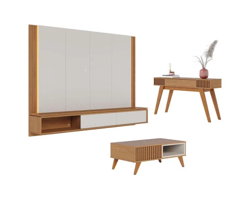 Home Suspenso Loa Off White Freijó com Mesa de Centro Jeri Freijó Off White e Aparador Riviera Freijó – Colibri