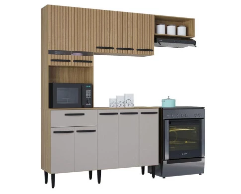 Kit Cozinha Dora Com Balcão Damasco Ripado Off White - Poquema