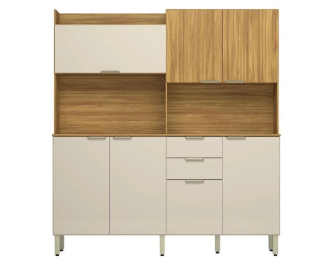 Precisando de móveis para sua cozinha?. Apresentamos esse lindo kit cozinha da linha Pitaya, fabricado pela Demóbile desenvolvido 100% em MDP. Possui espaço para acomodar micro-ondas. Possui 6 portas, prateleiras, nicho para ser usado como decorativo, 2 gavetas, amplo espaço interno com varias repartições. Além disso, possui uma porta basculante deixando mais suave o abri e fechar. Possui pés com regulagem de altura para adaptar melhor a diferentes superfícies. Esse kit é a combinação perfeita para quem busca funcionalidade e modernidade para seu ambiente. Aproveite e garanta já o seu!