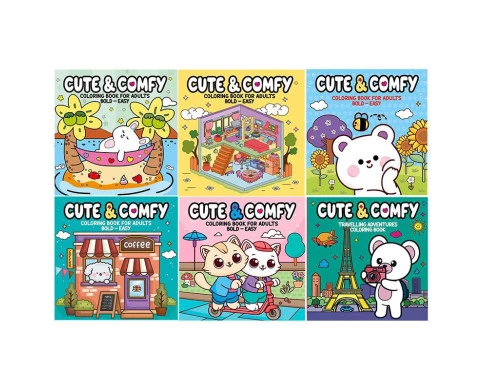 Com os Livros Cute & Comfy você irá soltar a criatividade e acalmar sua mente! As páginas são cheias de desenhos encantadores que misturam o estilo fofo com cenas aconchegantes, personagens adoráveis, objetos do cotidiano e momentos inesquecíveis, é perfeito para você se aventurar e colorir do seu jeitinho, não perca mais tempo e aproveite!