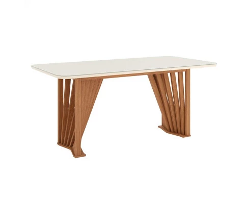 Mesa de Jantar Adriana 180 cm Canto Arredondado com Vidro Nature Off White – Henn