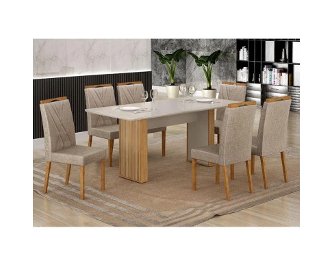 Mesa de Jantar Ambiente Júlia 180x90cm Cinamomo Off White com 6 Cadeiras Lara Linho Bege - Valdemóveis