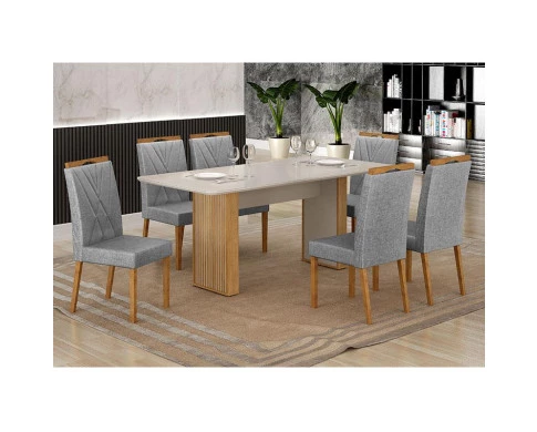 Mesa de Jantar Ambiente Júlia 180x90cm Cinamomo Off White com 6 Cadeiras Lara Linho Prata - Valdemóveis
