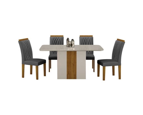 Mesa de Jantar Doha 120x80 Off White Decor Off com 4 Cadeiras Freijó Joli Chumbo – Leifer Móveis