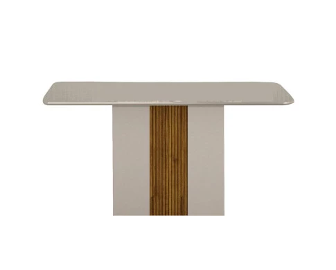 A Mesa de Jantar Doha é o toque de elegância que sua sala de jantar precisa! Possui tampo com vidro serigrafado, canto copo, base com design moderno e pintura 3D ripada. O móvel perfeito para refeições e momentos especiais com familiares e amigos. Confira mais detalhes e aproveite!