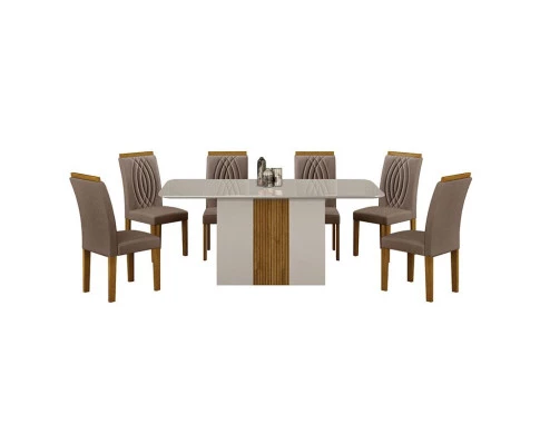 Mesa de Jantar Doha 160x80 Off White Freijó Decor Off com 6 Cadeiras Freijó Joli Camurça – Leifer Móveis