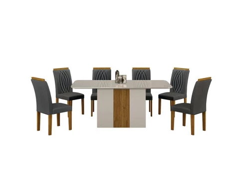 Mesa de Jantar Doha 160x80 Off White Freijó Decor Off com 6 Cadeiras Freijó Joli Chumbo – Leifer Móveis