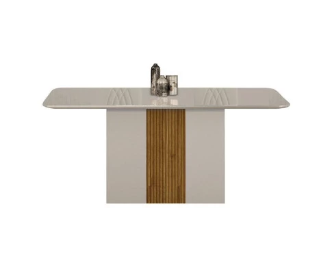 A Mesa de Jantar Doha é o toque de elegância que sua sala de jantar precisa! Possui tampo com vidro serigrafado, canto copo, base com design moderno e pintura 3D ripada. O móvel perfeito para refeições e momentos especiais com familiares e amigos. Confira mais detalhes e aproveite!