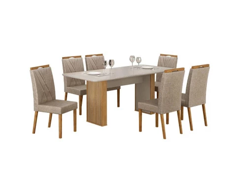 Mesa de Jantar Júlia 180x90cm Cinamomo Off White com 6 Cadeiras Lara Linho Bege - Valdemóveis