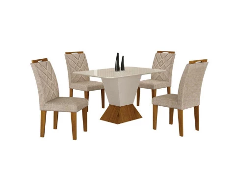 Deixe sua sala de jantar ainda mais aconchegante com moveis de qualidade e o melhor preço do mercado. Apresentamos a sala de jantar com mesa e cadeiras da linha Larissa, desenvolvidas pela Leifer Móveis. Mesa com base em MDF, tampo com vidro serigrafado e canto copo. As cadeiras Larissa New são fabricadas em MDF, possui encosto bordado e tecido de alta qualidade. Decore o seu ambiente com elegância e desfrute de momentos alegres e confortáveis com amigos e familiares!