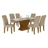 Mesa de Jantar Larissa 180x90 Freijó Off White com 6 Cadeiras MDF Freijó Linho Palha - Leifer Móveis