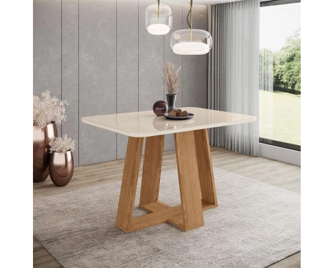 Mesa de Jantar Lins 120 cm Ambiente Canto Arredondado com Vidro Nature Off White – Henn