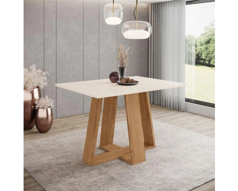 Mesa de Jantar Lins 120 cm Ambiente Canto Reto sem Vidro Nature Off White – Henn