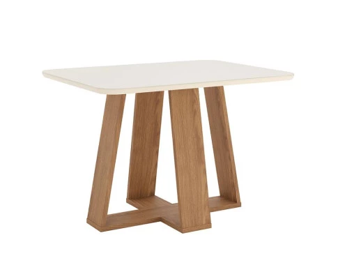 Mesa de Jantar Lins 120 cm Canto Arredondado com Vidro Nature Off White – Henn