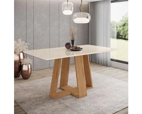 Mesa de Jantar Lins 160 cm Ambiente Canto Reto com Vidro Nature Off White – Henn