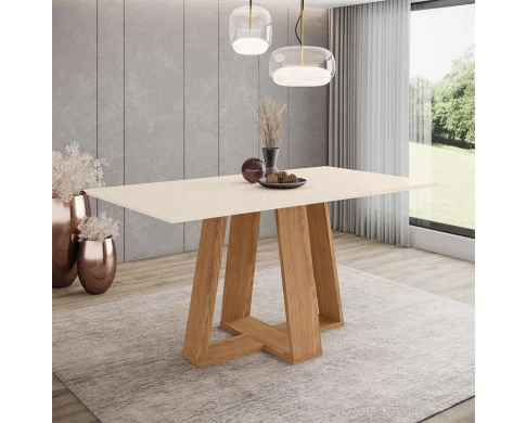 Mesa de Jantar Lins 160 cm Ambiente Canto Reto sem Vidro Nature Off White – Henn