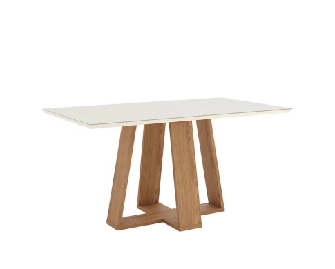 Mesa de Jantar Lins 160 cm Canto Reto com Vidro Nature Off White – Henn