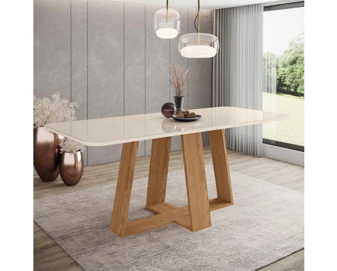 Mesa de Jantar Lins 200 cm Ambiente Canto Arredondado com Vidro Nature Off White – Henn