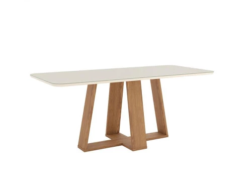 Mesa de Jantar Lins 200 cm Canto Arredondado com Vidro Nature Off White – Henn