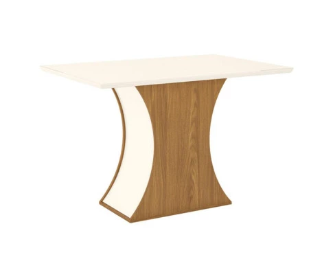 Mesa de Jantar Luiza 120 cm Canto Reto com Vidro Nature Off White – Henn