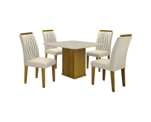 Mesa de Jantar Napoli 90x90 Freijó Decor Off White com 4 Cadeiras Doha MDF Freijó Joli Palha – Leifer Móveis