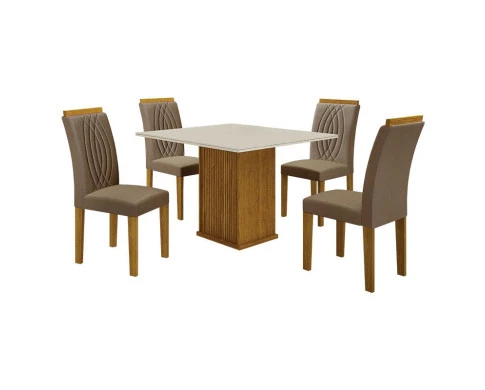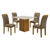 Mesa de Jantar Napoli 90x90 Reto Freijó Decor Off White com 4 Cadeiras Doha MDF Freijó Joli Camurça – Leifer Móveis