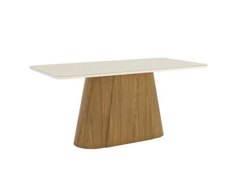 Mesa de Jantar Olivia 180 cm Canto Arredondado com Vidro Nature Off White – Henn