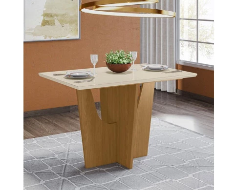 Mesa de Jantar Vértice 120 cm Ambiente Canto Reto com Vidro Nature Off White – Henn