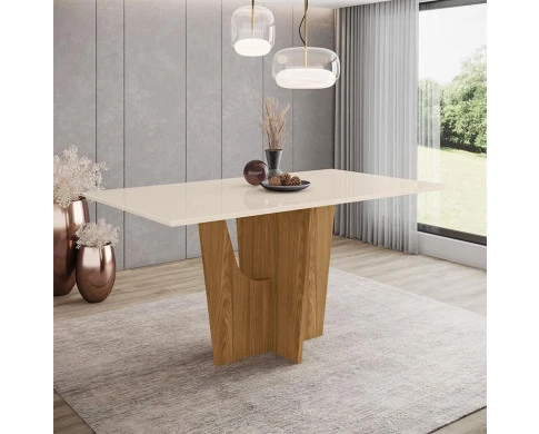 Mesa de Jantar Vértice 160 cm Ambiente Canto Reto sem Vidro Nature Off White – Henn