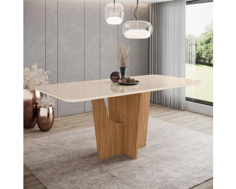 Mesa de Jantar Vértice 180 cm Ambiente Canto Arredondado com Vidro Nature Off White – Henn