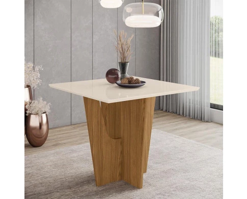 Mesa de Jantar Vértice 90 cm Ambiente Canto Reto sem Vidro Nature Off White – Henn