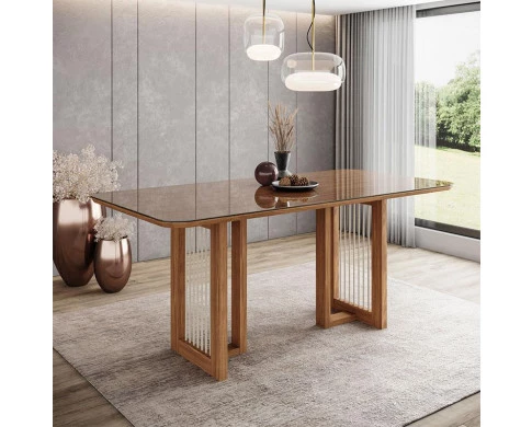Mesa de Jantar Yara Ambiente 160 cm Canto Arredondado com Vidro Nature – Henn